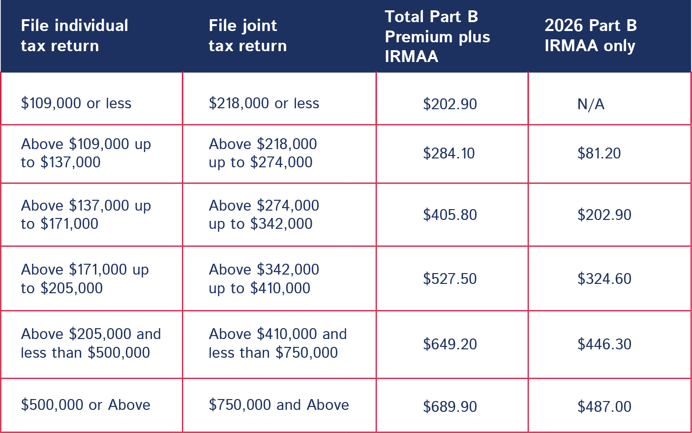 2026 PART-B AND PART-D IRMAA - INCOME RELATED MONTHLY ADJUSTMENT AMOUNT